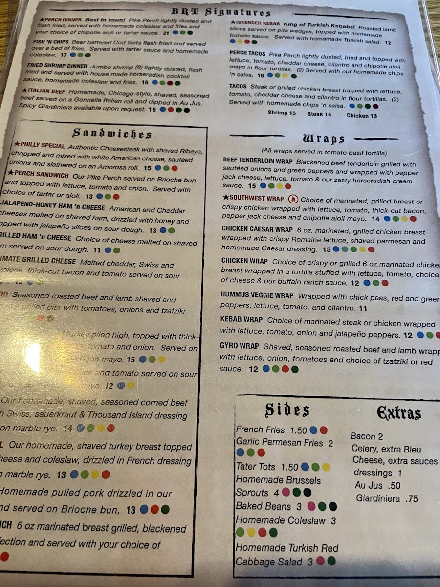 Pike perch lightly dusted, fried, and wrapped with romaine, tomatoes, onions, sharp cheddar cheese, and chipotle aioli